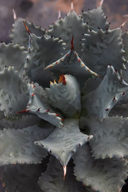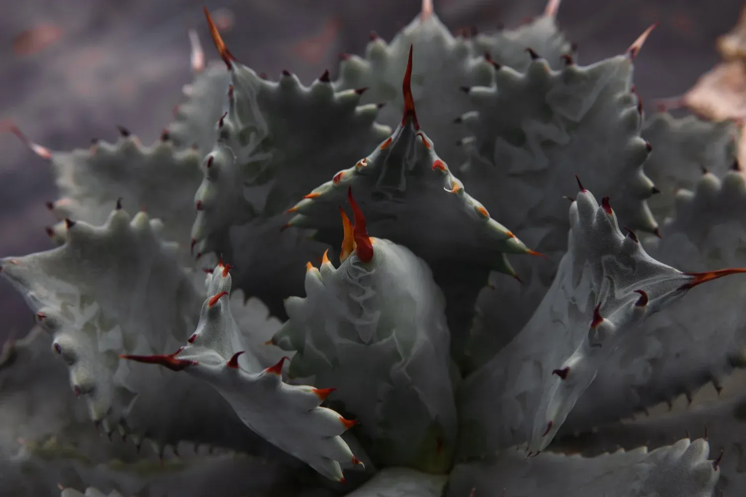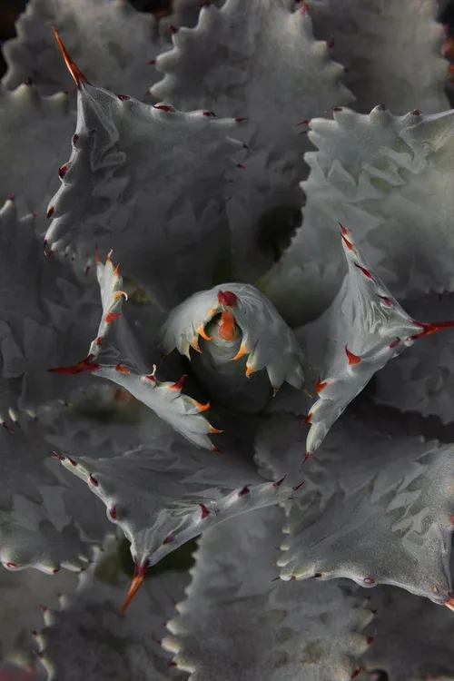 Agave potatorum ‘Kichijokan’ is a small growing agave to 12 inches tall by 12 inches wide with short blue/gray leaves with beautiful imprints on the backside of the leaves and red spines. This selection is thought to be a Japanese cultivar of Agave potatorum and is highly sought after.