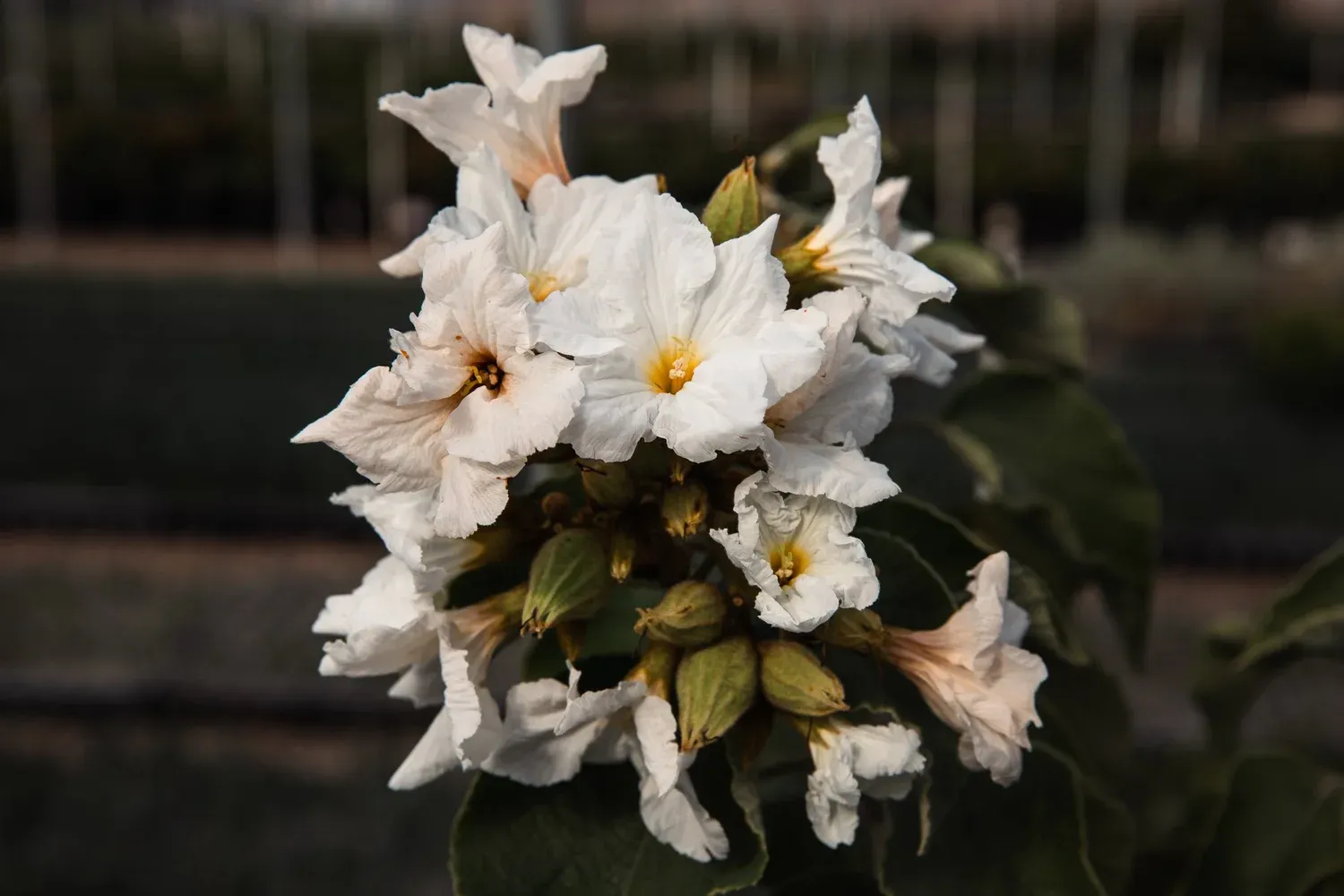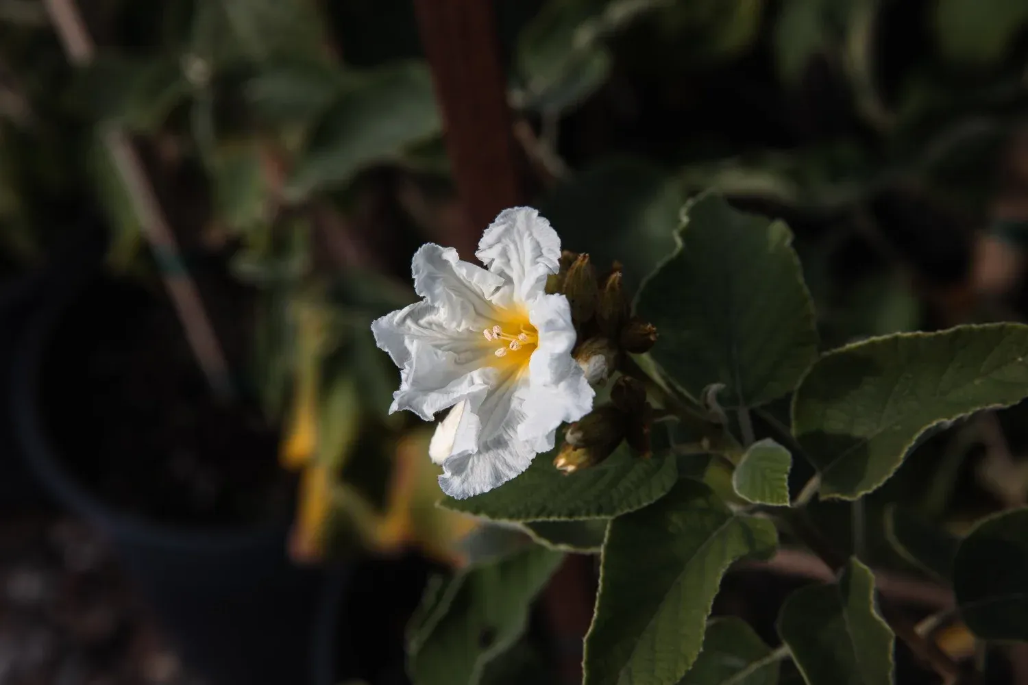 Aside from some notable cacti, white-flowering desert plants are hard to come by, but this desert native proves it can be done elegantly with exceptional tolerance of drought, full sun, and sweltering heat. From a distance, the clusters of white flowers on Little Leaf Cordia resemble airy puffs of cotton or snow. These blooms persist from spring through fall, and are especially prolific during monsoon season, when heat and humidity levels are high. The natural form of this evergreen shrub is rounded and compact, and with little to no pruning necessary, it is incredibly easy to maintain. Use it in mass for informal borders, hedges or foundations, or single it out and feature it as an effortless but dramatic garden accent.