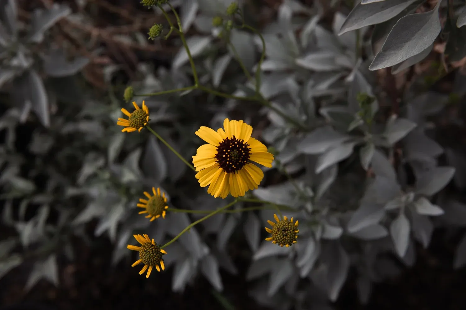 Encelia farinosa, referred commonly as brittlebush for its fragile, dry stems, is a desert evergreen shrub that grows to be 3-5ft tall. With a lifespan of up to 20 years in both urban and natural environments, this variety tends to grow in droves on rocky slopes, often occupying the in-between spaces nestled between roads and open desert. A variety whose seeds must be scarified to germinate, it tends to grow in clustered pockets close to areas with a high exposure to elements that will either crush the shell or easily entice birds or small mammals to consume for acidification once excreted. The flowers of Encelia farinosa are a pale yellow, and provide a soft, gentle blanket of daisy-like blooms that do well to color yardscapes in the late winter/early spring months. This variety is an excellent choice when planning either perennial or moon gardens.