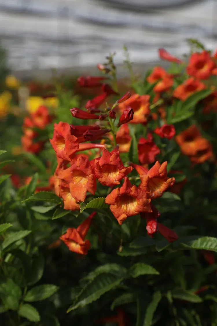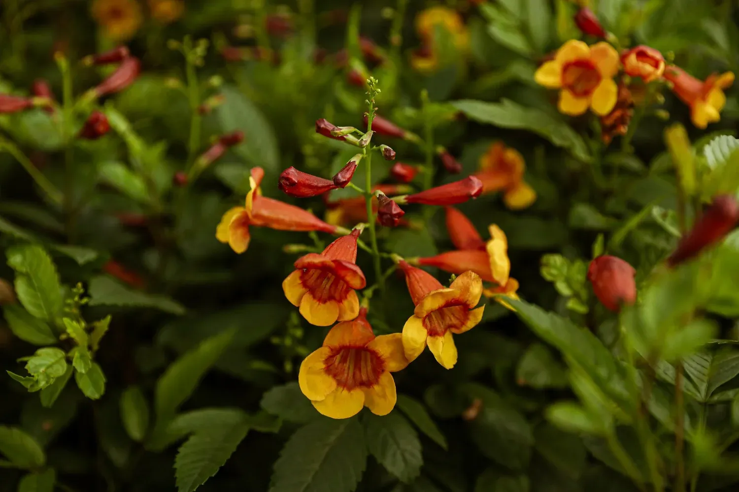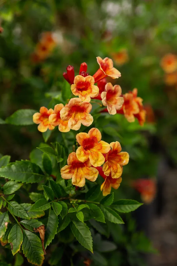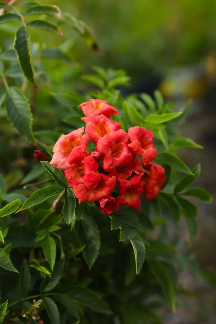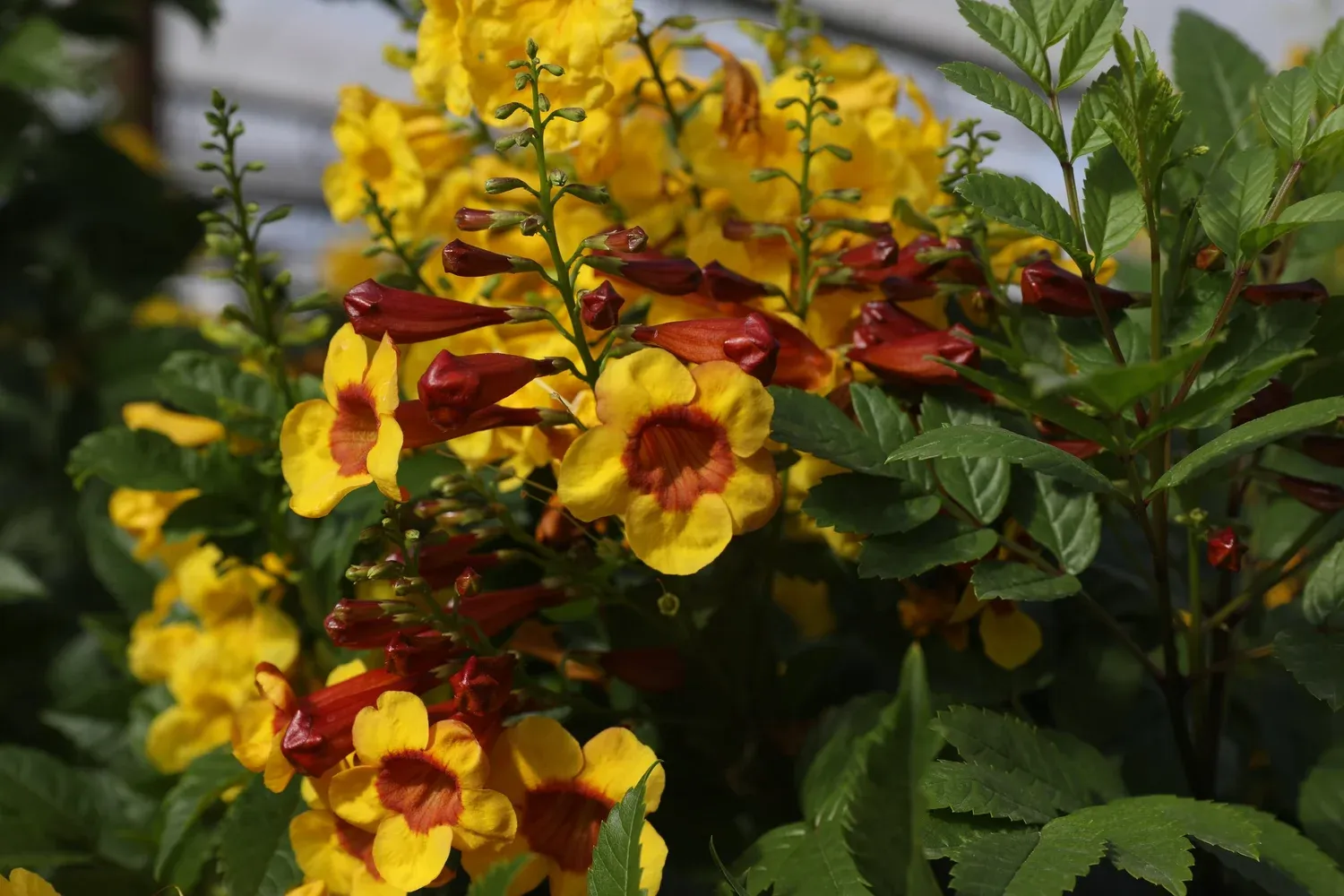 Tecoma ‘Bells of Fire’™️ – USPP24170P2 The Tecoma ‘Bells of Fire’ has deep dark red tubular flowers, as the name would suggest, making it one of the more popular of the Tecoma cultivars. Another larger variety, it too will reach heights of 6’ with a 4’ spread.