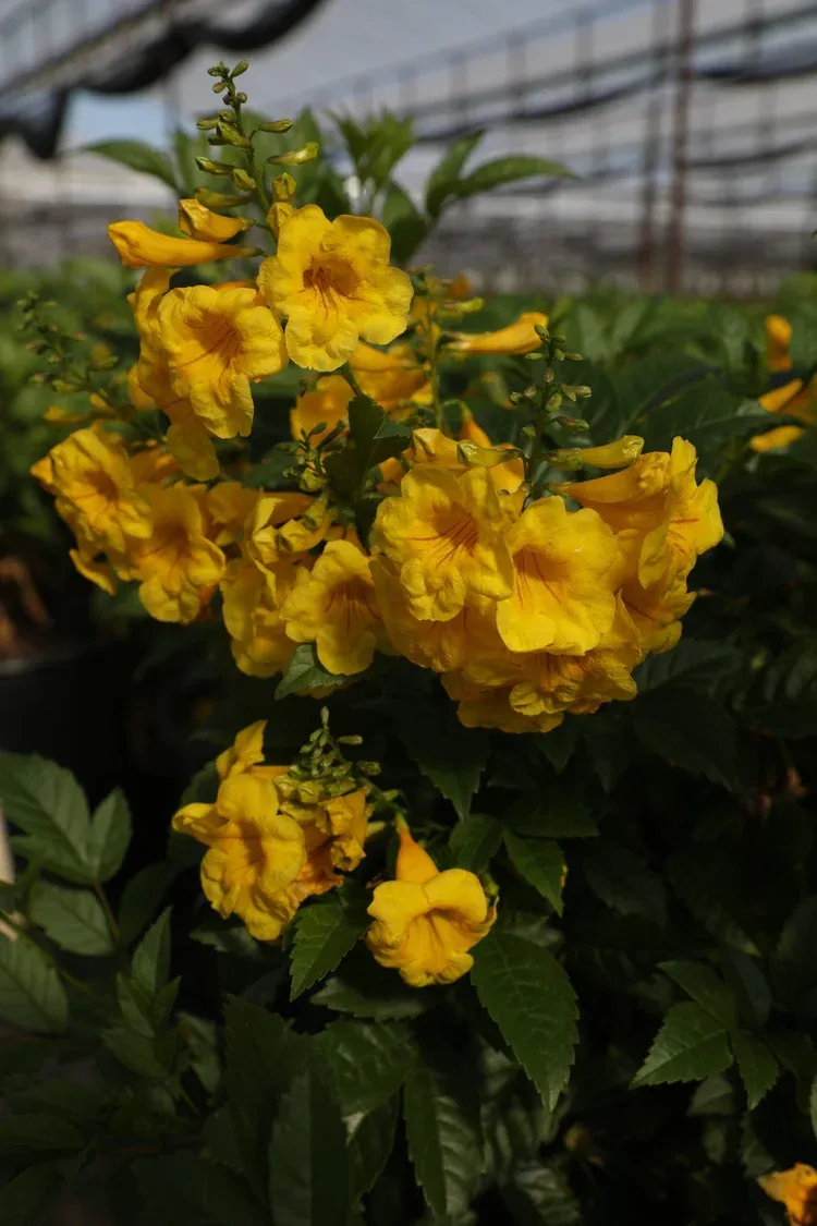 Tecoma ‘Lydia’™️ – USPP24169P2 The Tecoma ‘Lydia’™️ is a dwarf variety of the popular Yellow Bells, Tecoma stans. Lydia™️ has similar tubular flowers that are also yellow, albeit a lighter, paler yellow than those of the parent plant. Growing only 3’ tall, Tecoma ‘Lydia’™️ is a perfect addition to smaller space such as a courtyard of pathway.